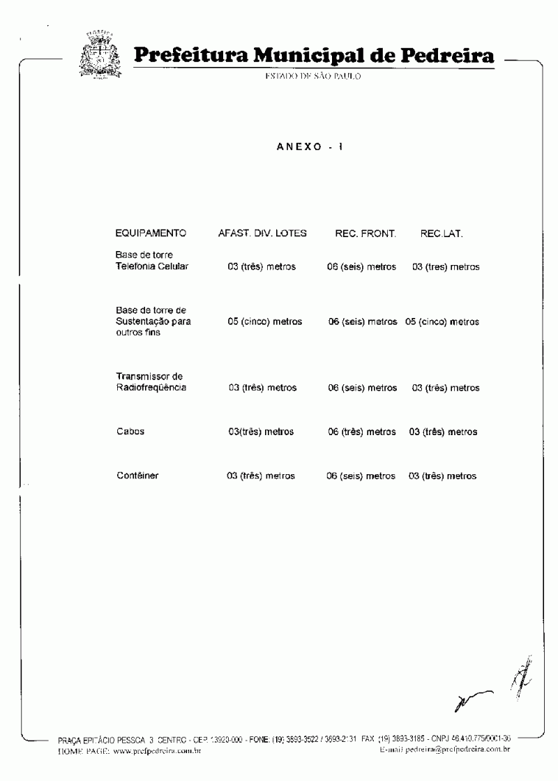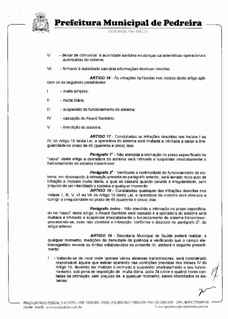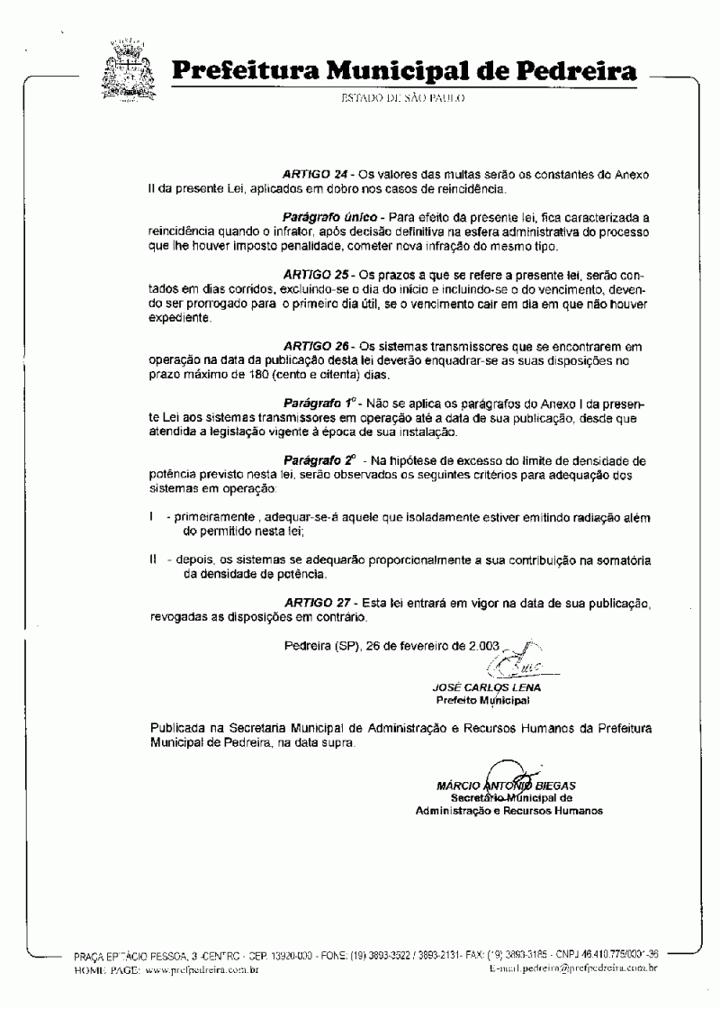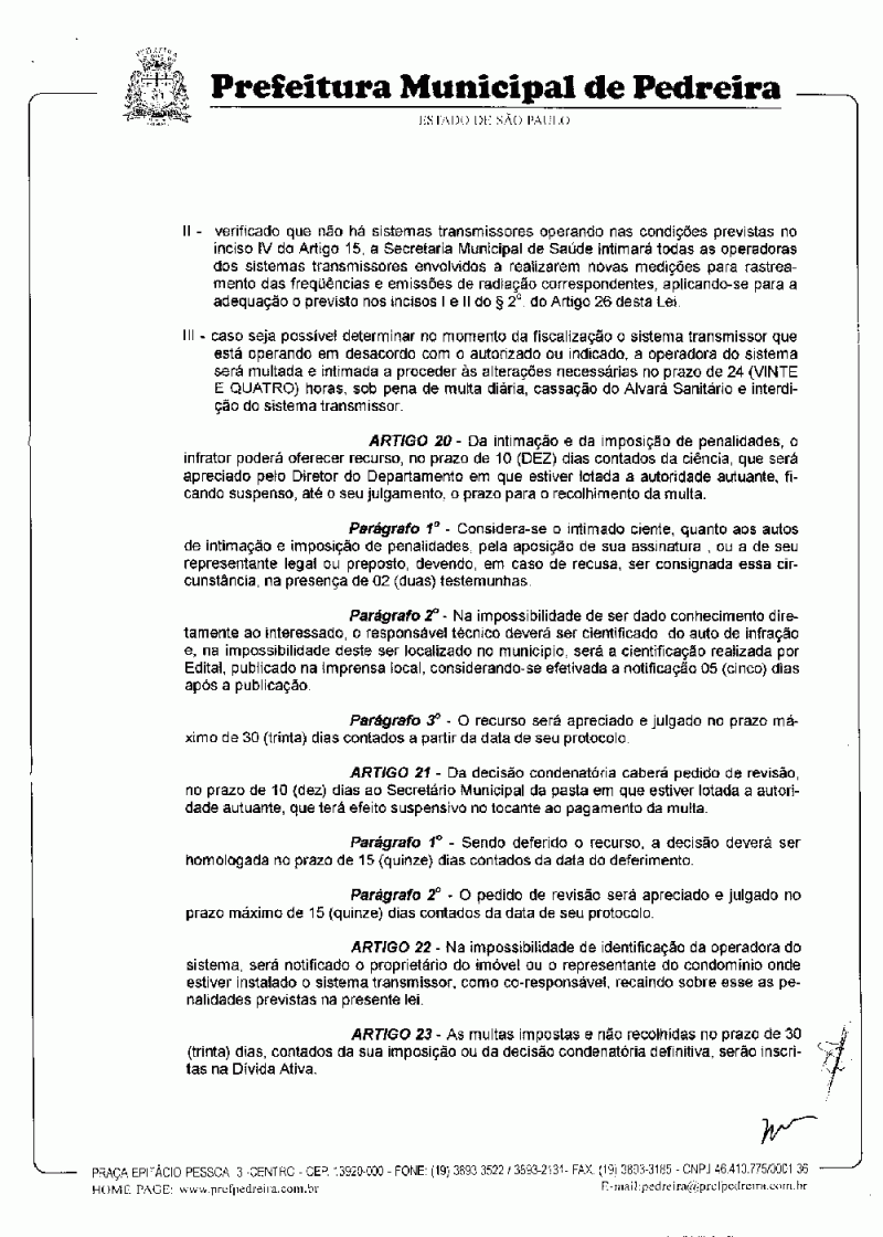 Ementa: Dispõe sobre a instalação de Sistemas de Transmissão de Telefonia em Geral no Município de Pedreira-SP, e dá outras providências.