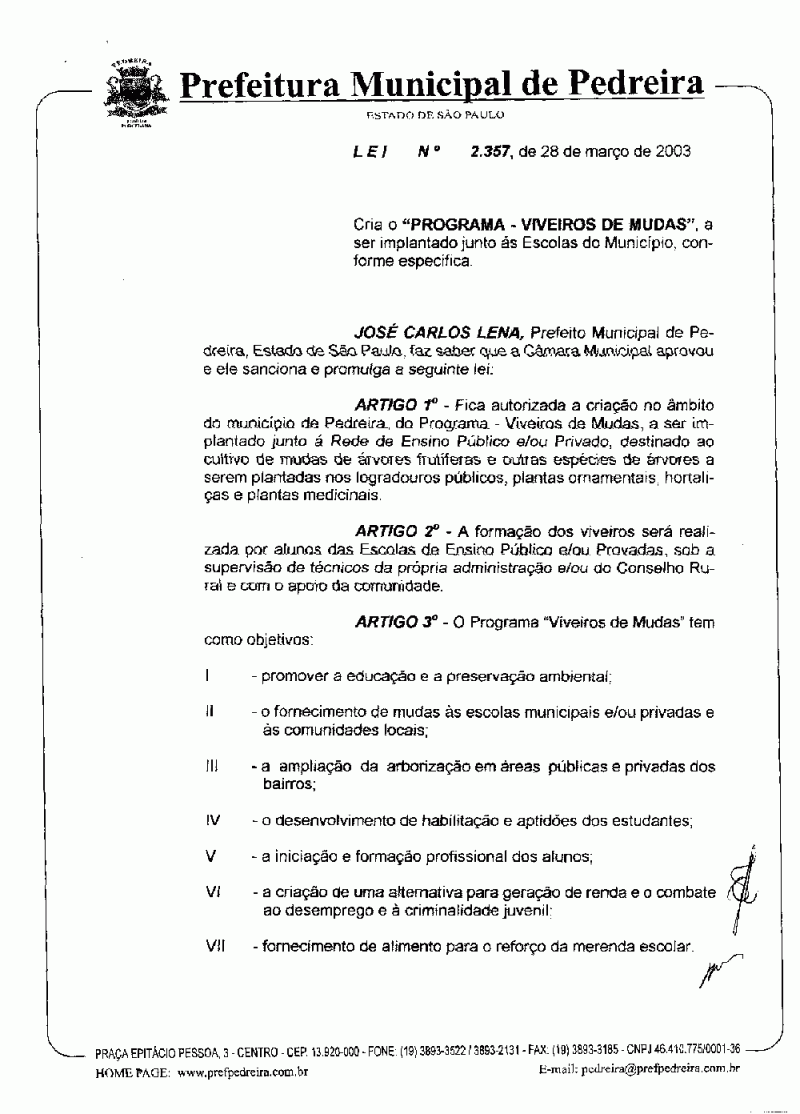 Lei Municipal - N° 2357 de 28/03/2003