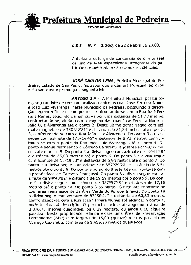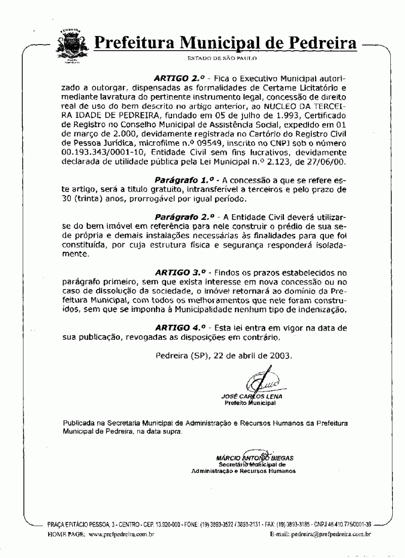 Ementa: Autoriza a outorga de concessão de direito real de uso de área especificada, integrante do patrimônio, e dá outras providências.