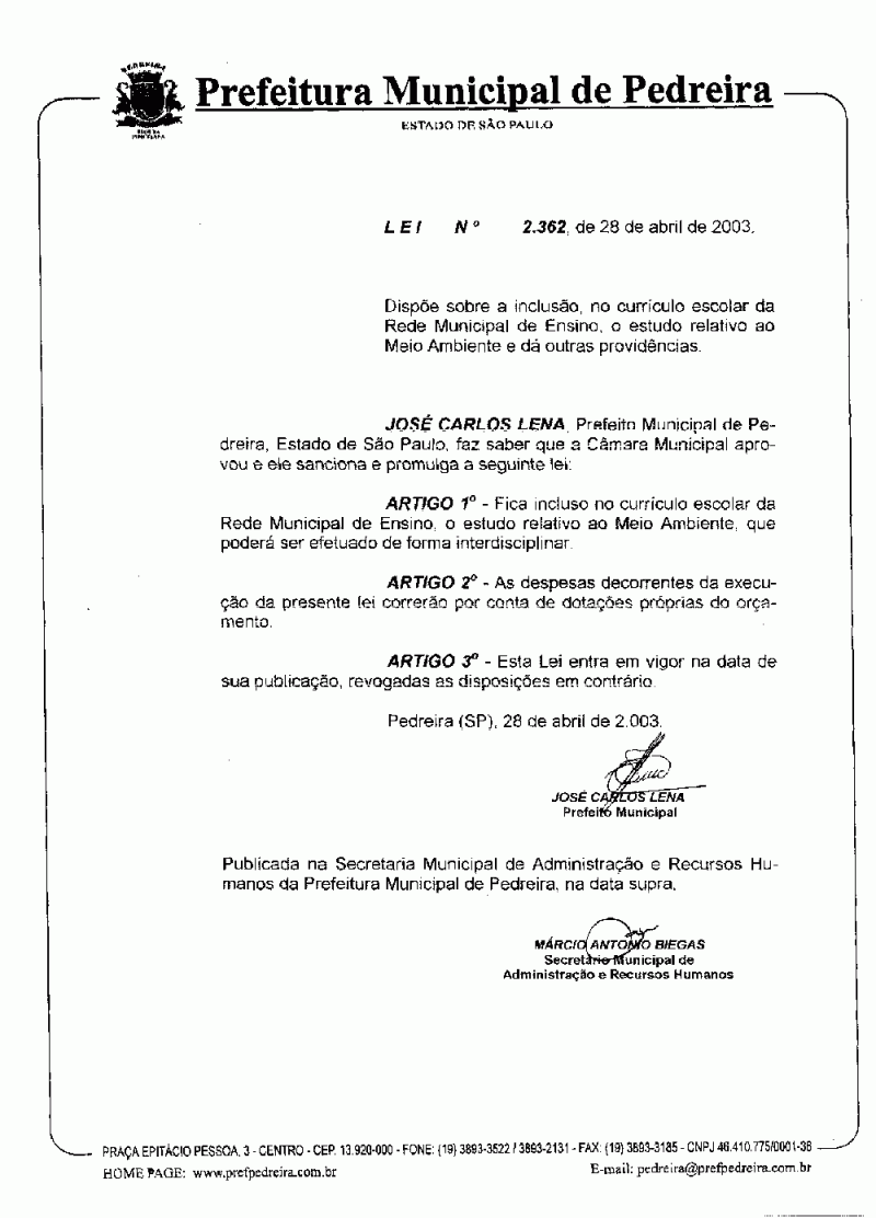 Ementa: Dispõe sobre a inclusão, no currículo escolar da Rede Municipal de Ensino, o estudo relativo ao Meio Ambiente e dá outras providências.