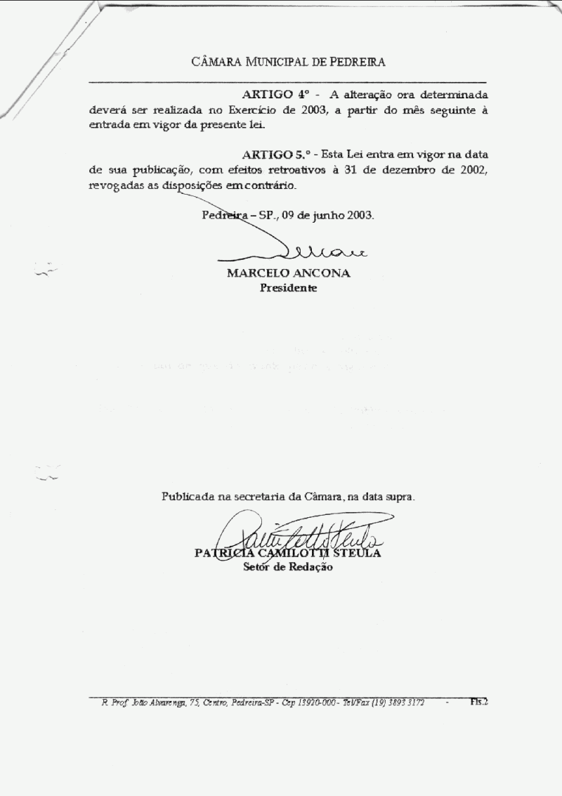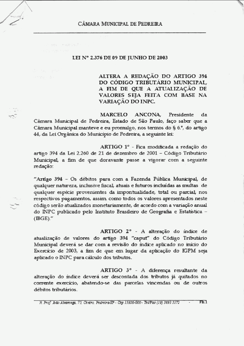 Lei Municipal - N° 2376 de 09/06/2003
