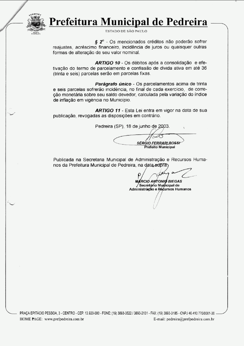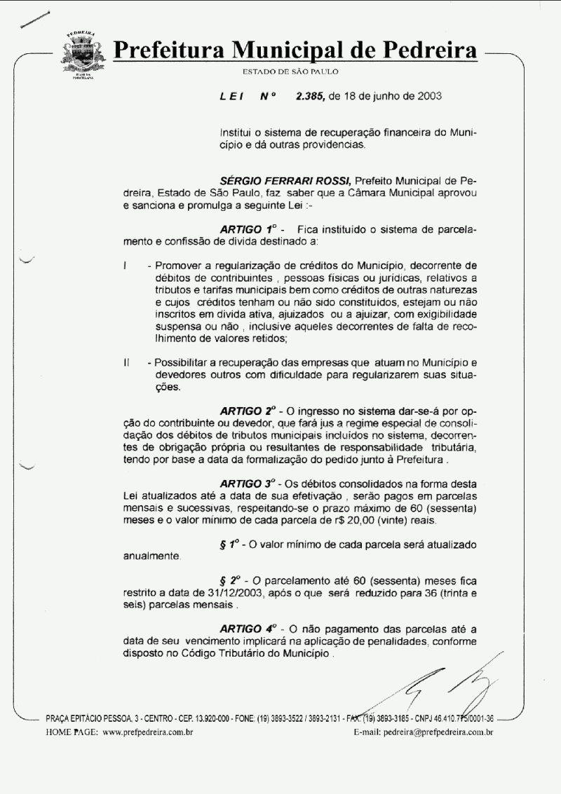 Ementa: Institui o sistema de recuperação financeira do Municipio e dá outras providências.