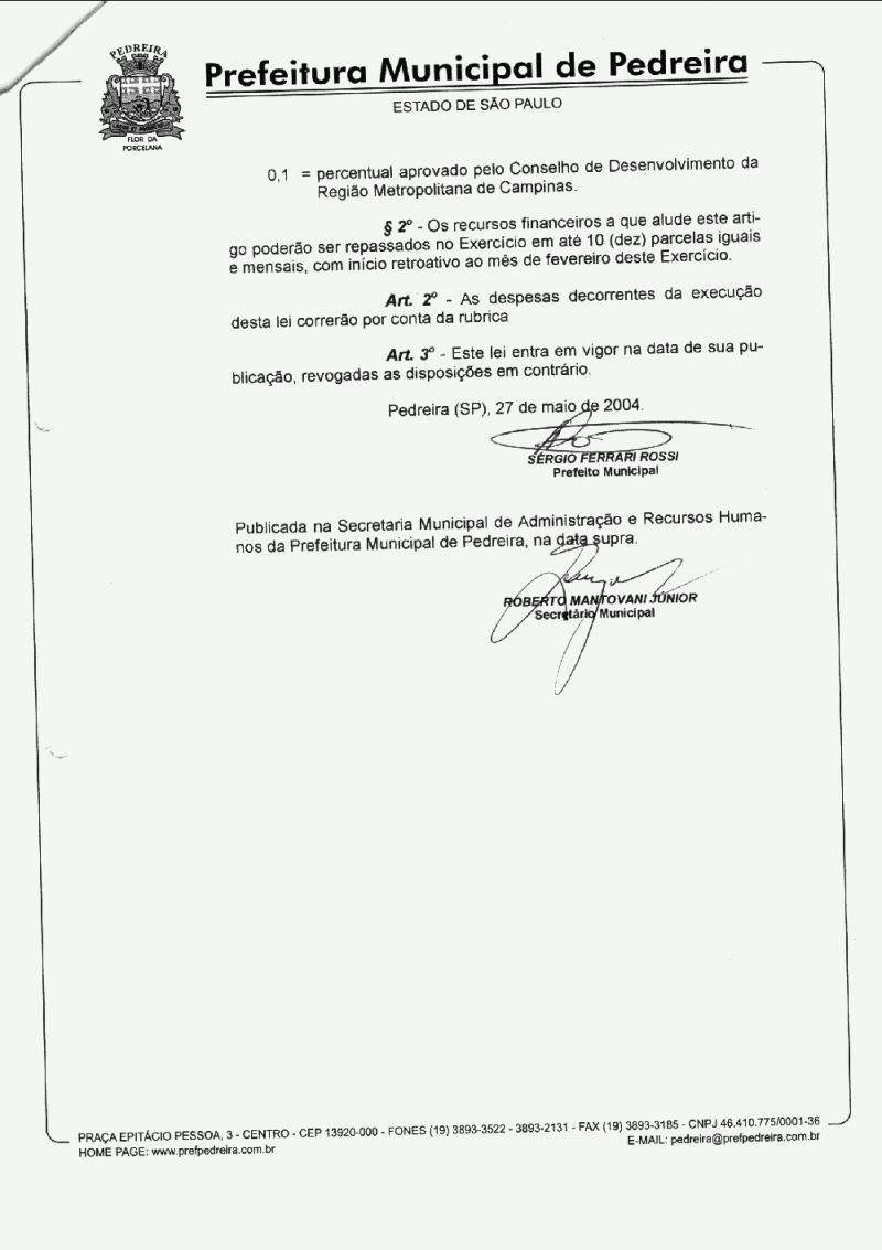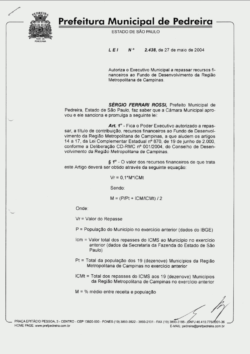 Lei Municipal - N° 2438 de 27/05/2004