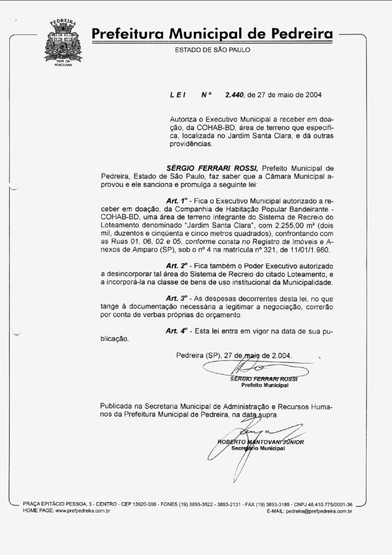 Lei Municipal - N° 2440 de 27/05/2004