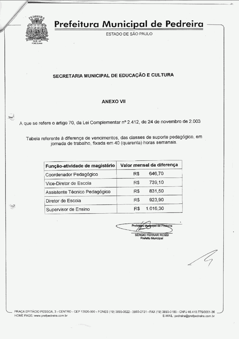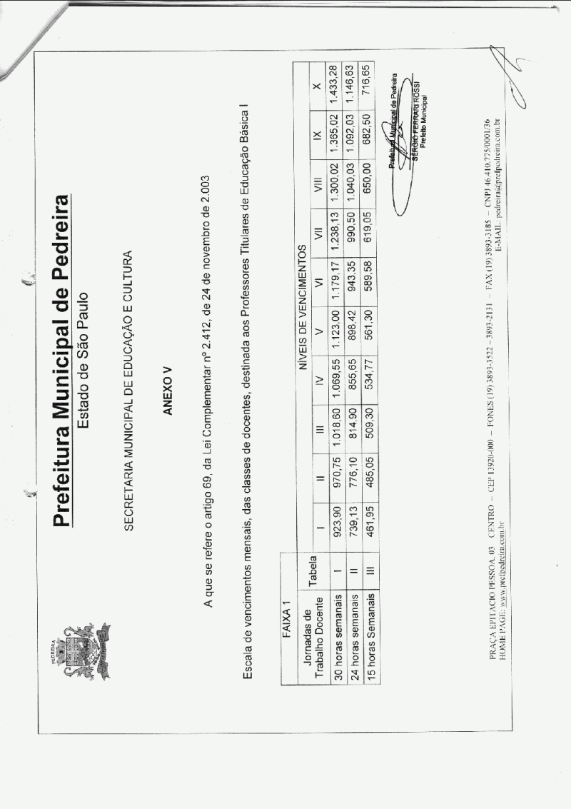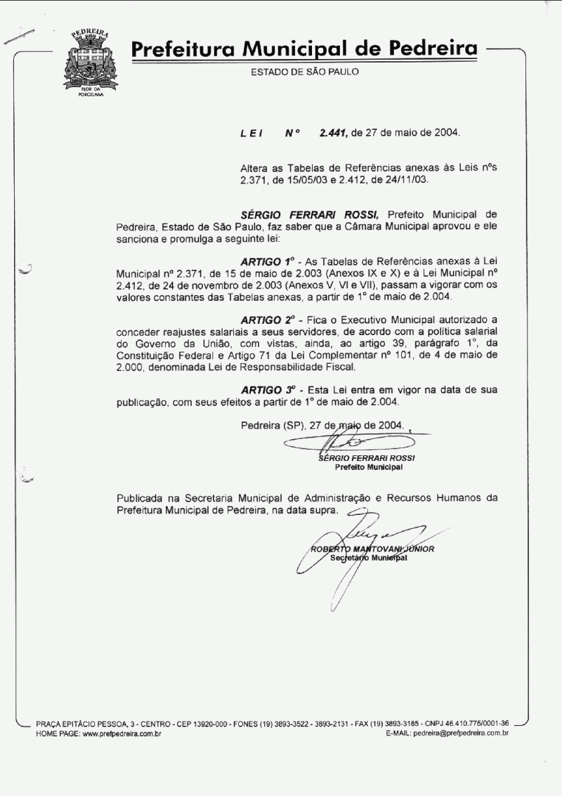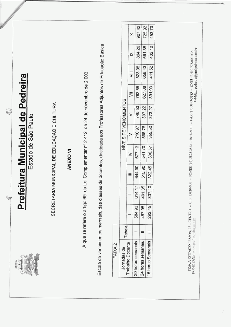 Ementa: Altera as tabelas de referências anexas às Leis nºs 2371, de 15/05/03 e 2412, de 24/11/03.