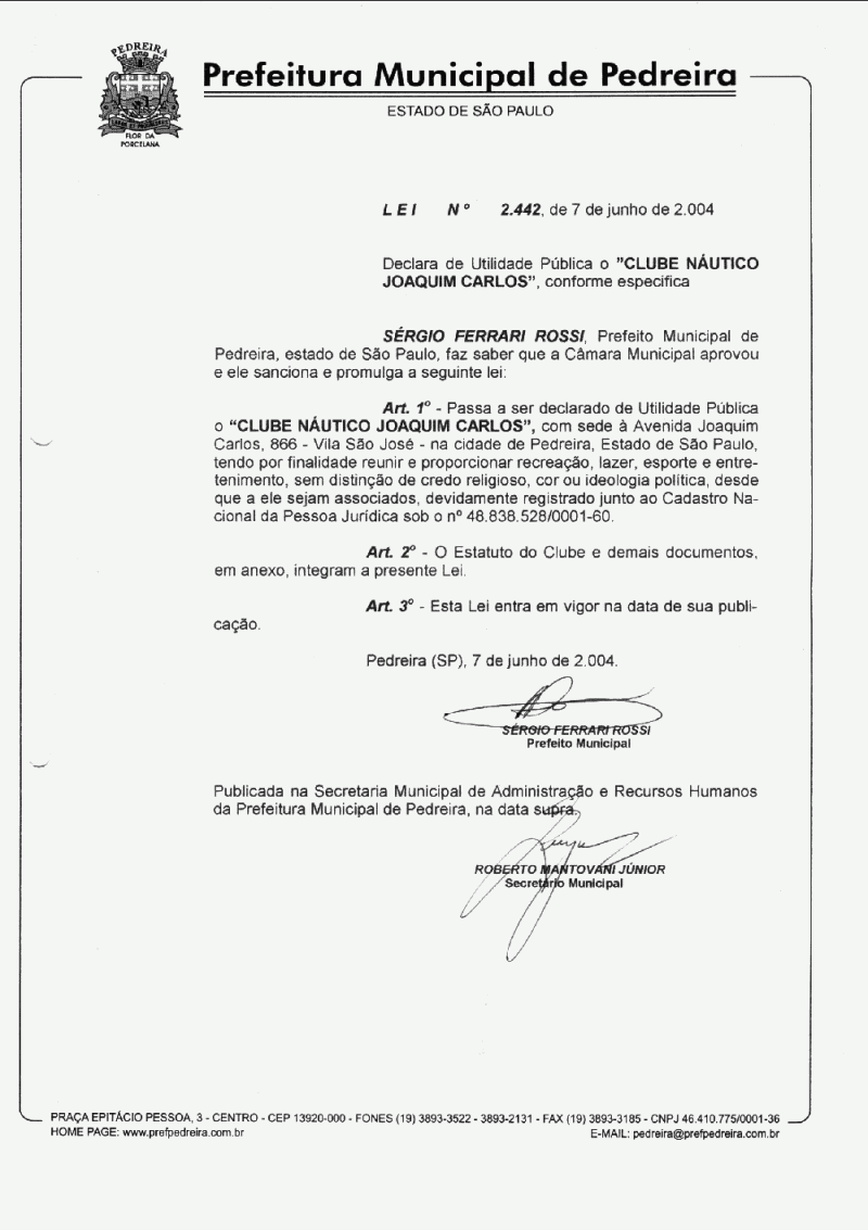Ementa: Declara de utilidade pública o "Clube Náutico Joaquim Carlos", conforme especifica.