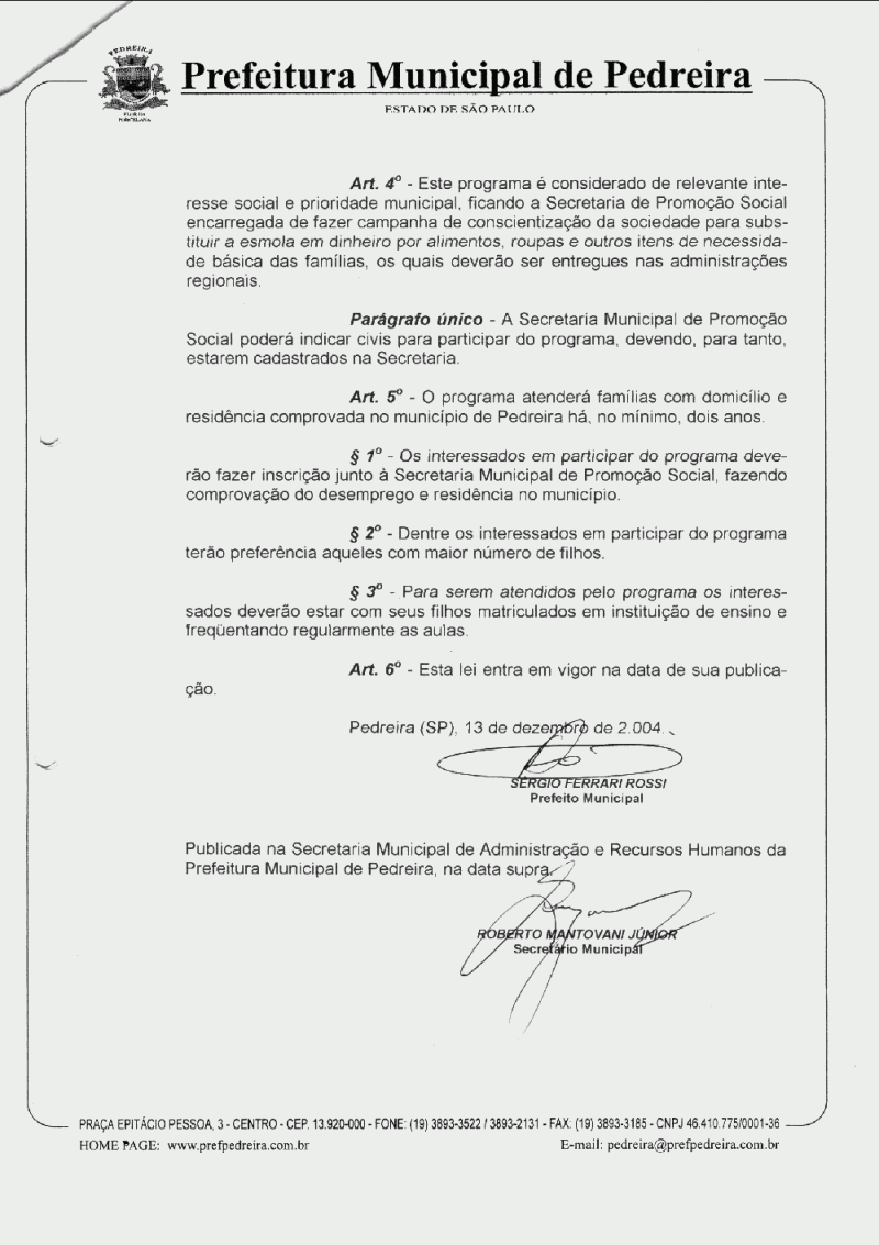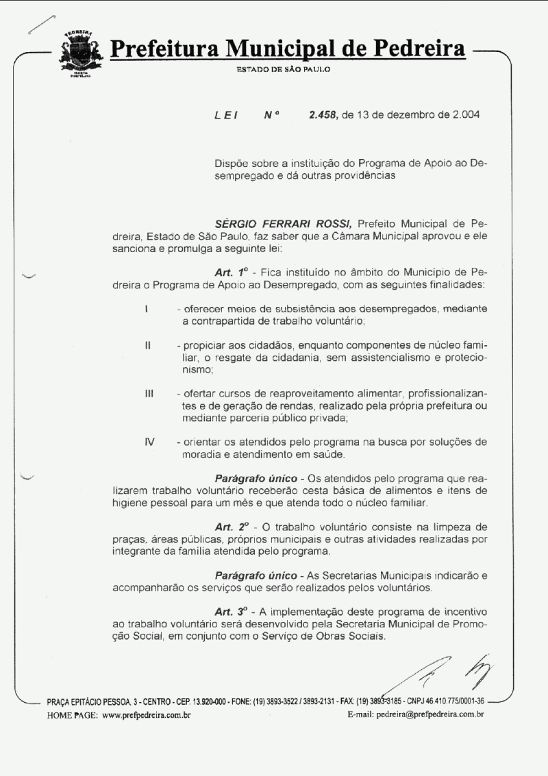 Lei Municipal - N° 2458 de 13/12/2004
