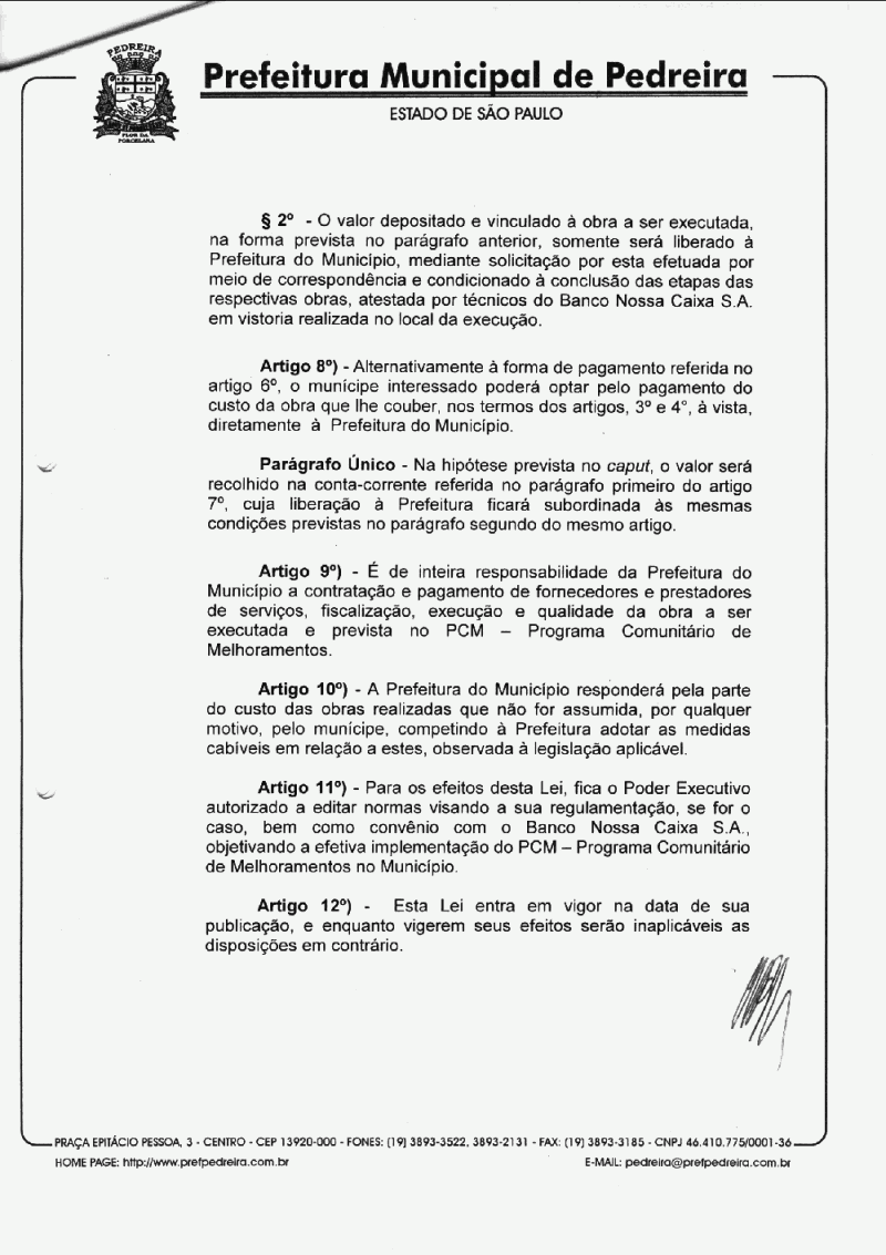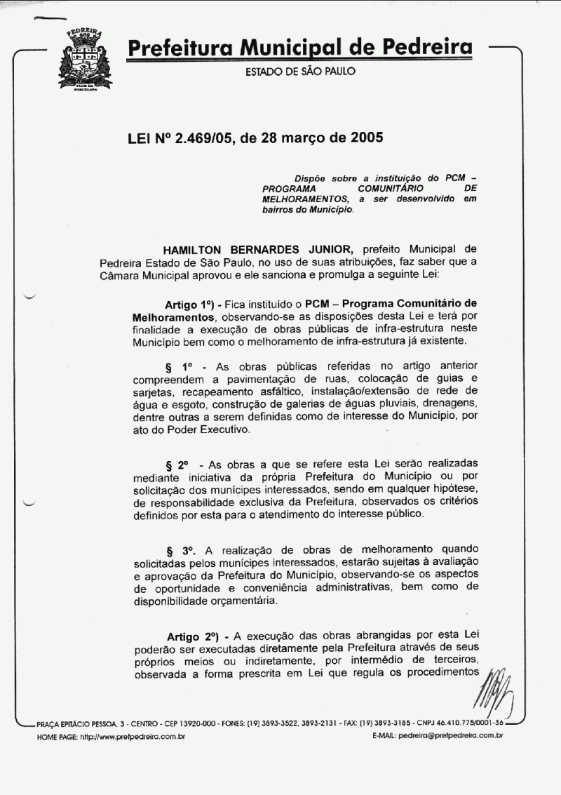 Ementa: Dispõe sobre a instituição do PCM - Programa Comunitário de Melhoramentos, a ser desenvolvido em bairros do Município.