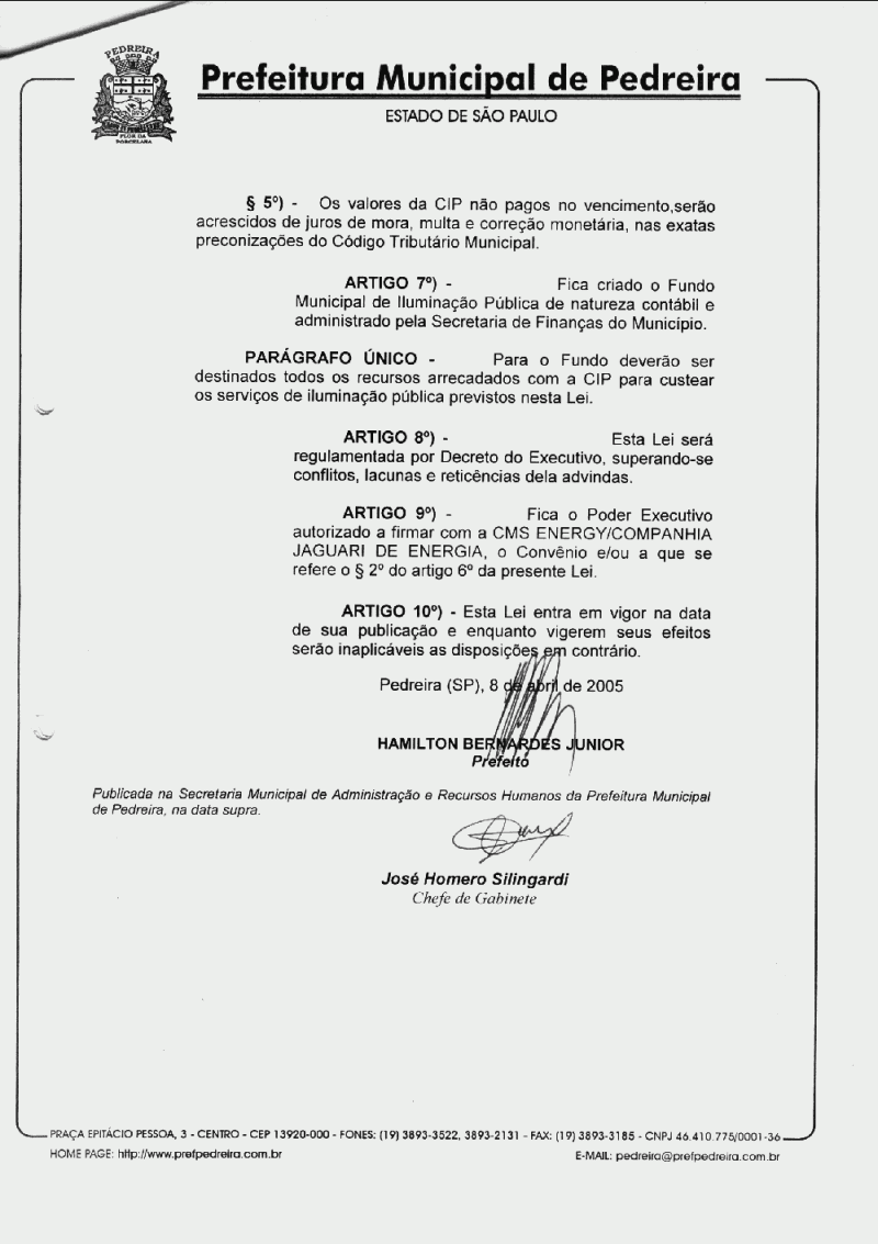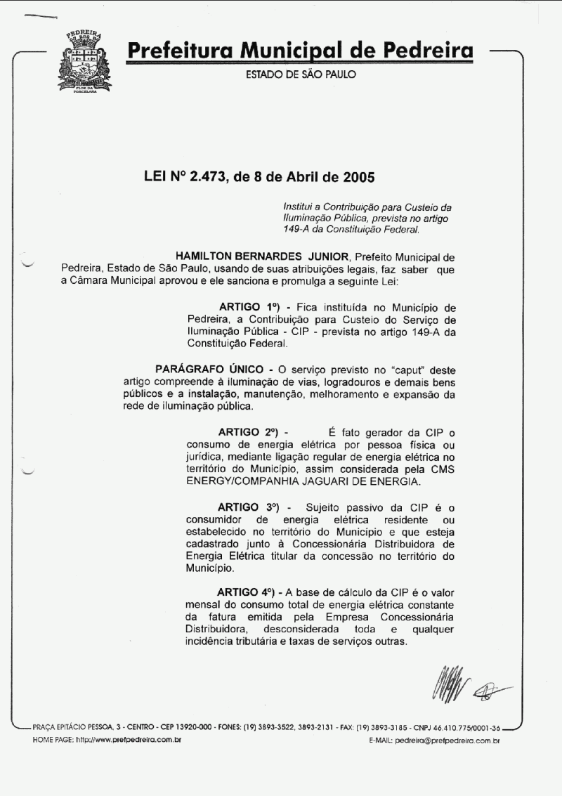 Lei Municipal - N° 2473 de 08/04/2005