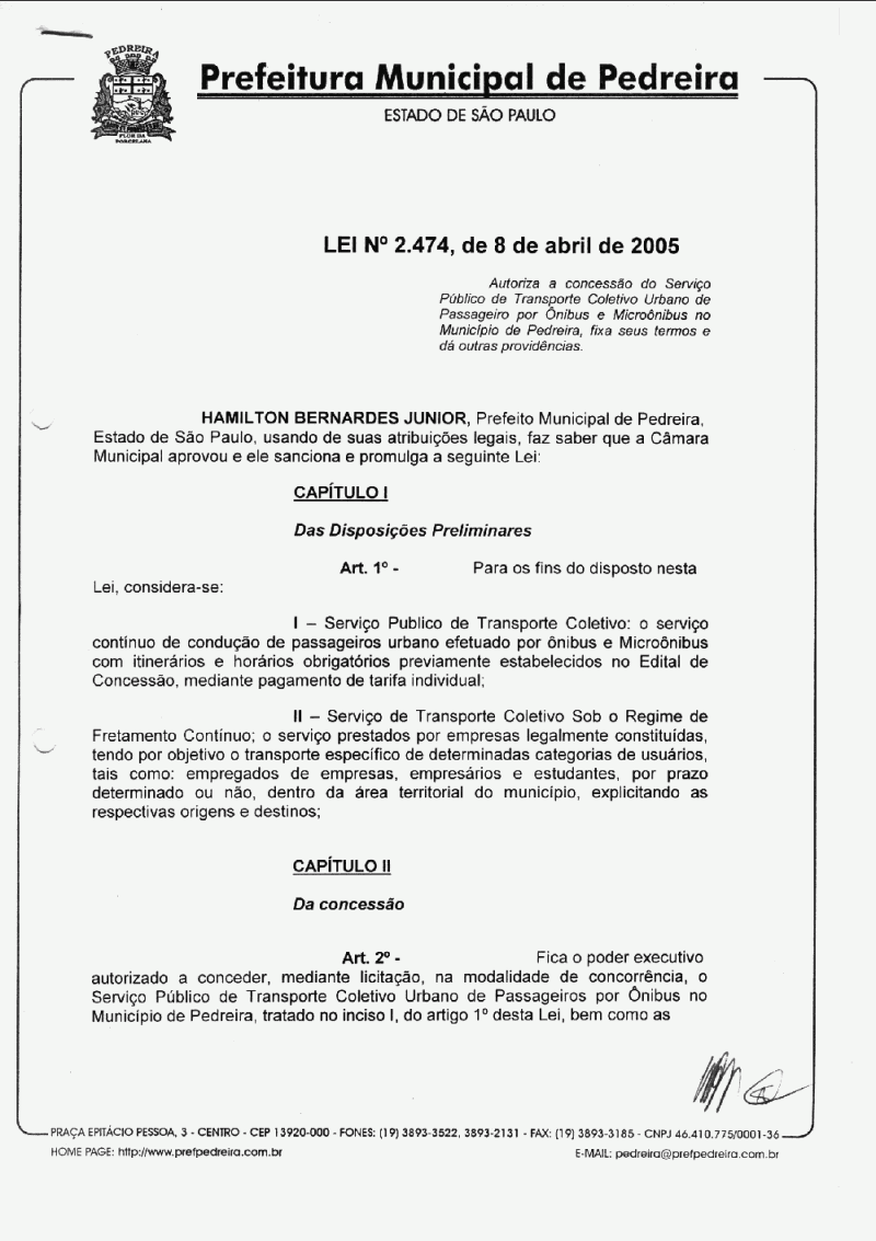 Lei Municipal - N° 2474 de 08/04/2005