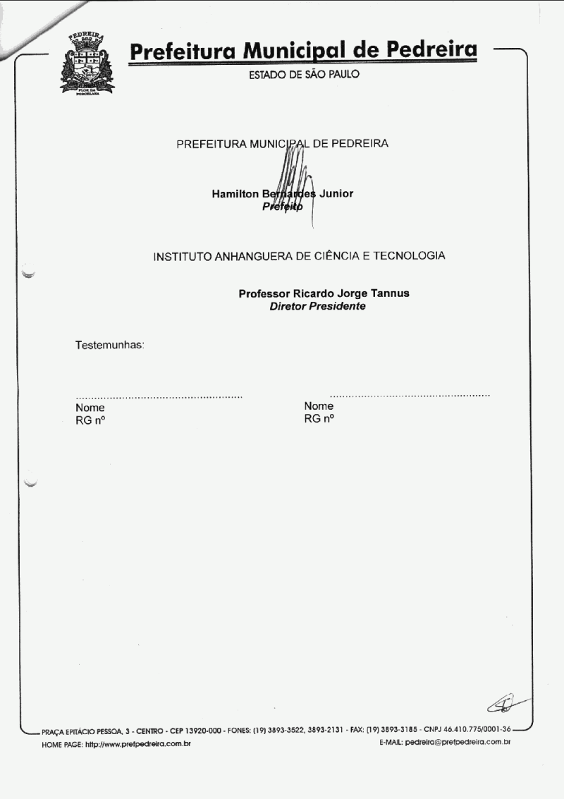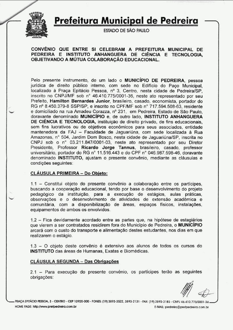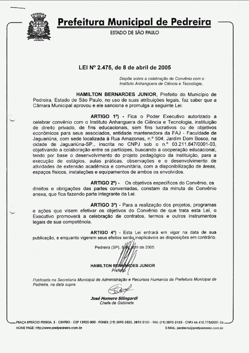 Ementa: Dispõe sobre a celebração de convênio com o Instituto Anhanguera de Ciência e Tecnologia.