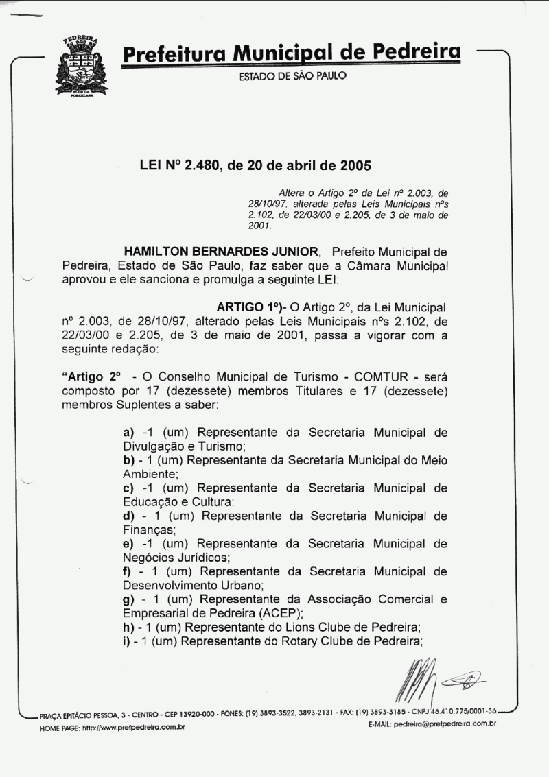 Ementa: Altera o artigo 2º da Lei nº 2003, de 28/10/97, alterada pelas Leis Municipais nºs 2102, de 22/03/00 e 2205, de 3 de maio de 2001.