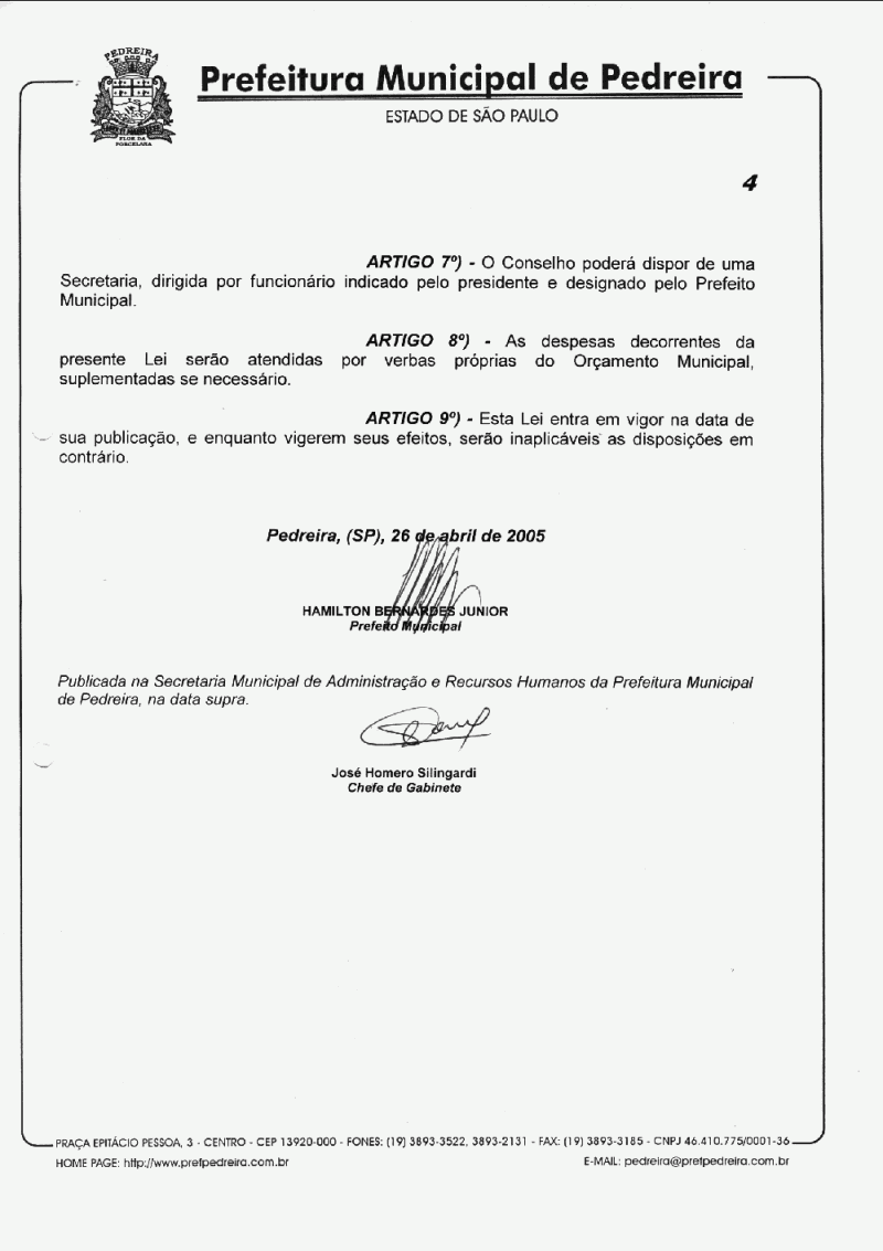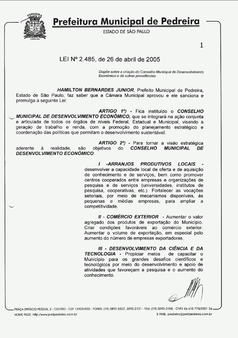 Lei Municipal - N° 2485 de 26/04/2005