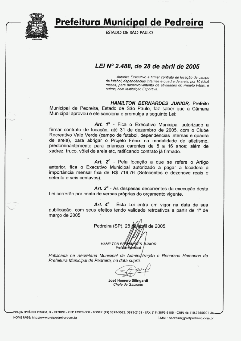 Lei Municipal - N° 2488 de 28/04/2005
