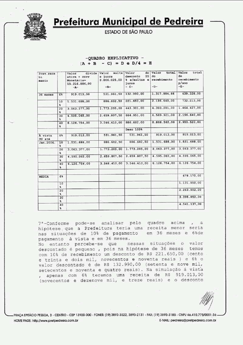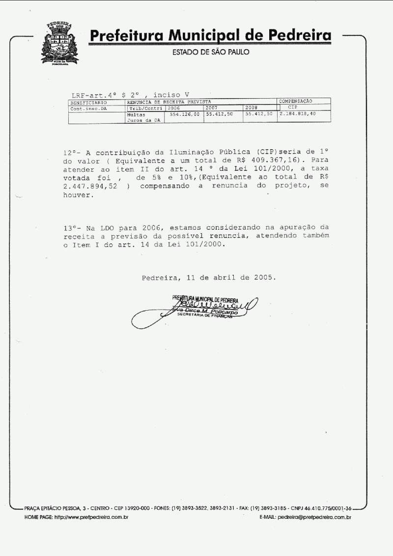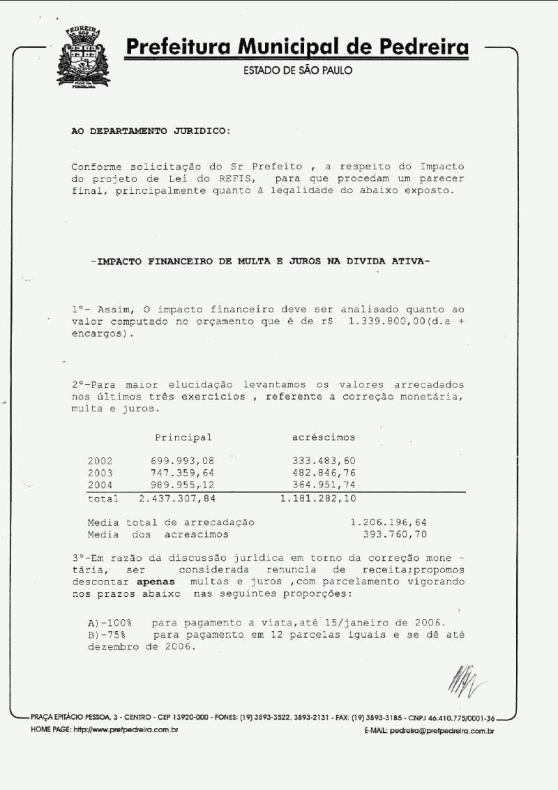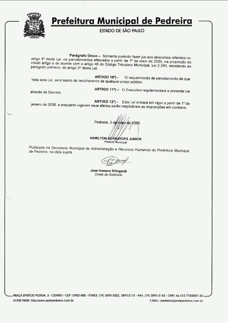Ementa: Institui o Programa de Recuperação Fiscal de Empresas e Saneamento de Débitos dos Contribuintes perante a Fazenda Municipal - REFIS - no município de Pedreira e dá outras providências.