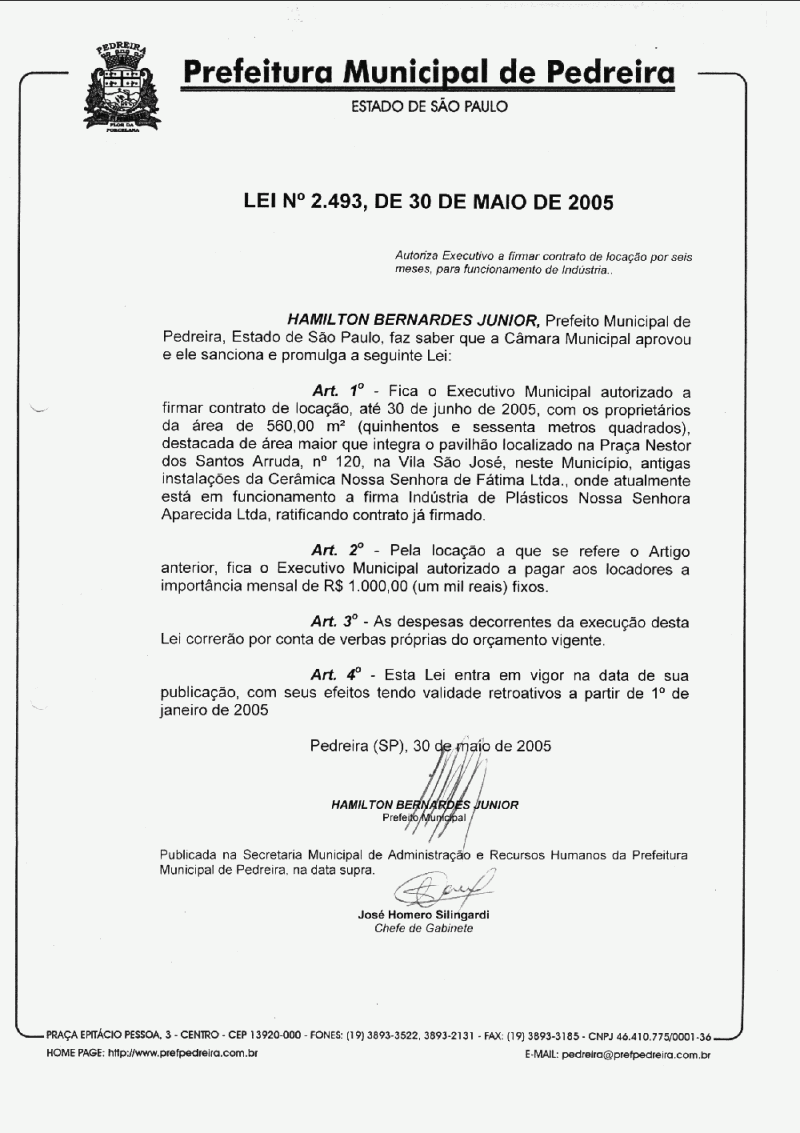 Lei Municipal - N° 2493 de 30/05/2005