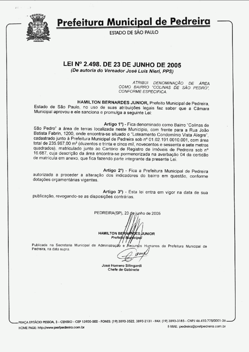 Lei Municipal - N° 2498 de 23/06/2005