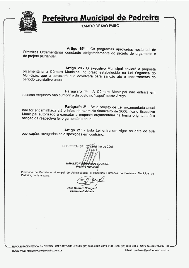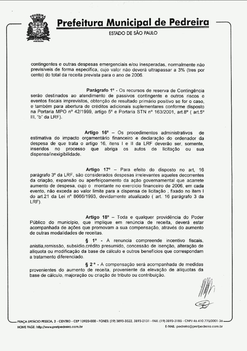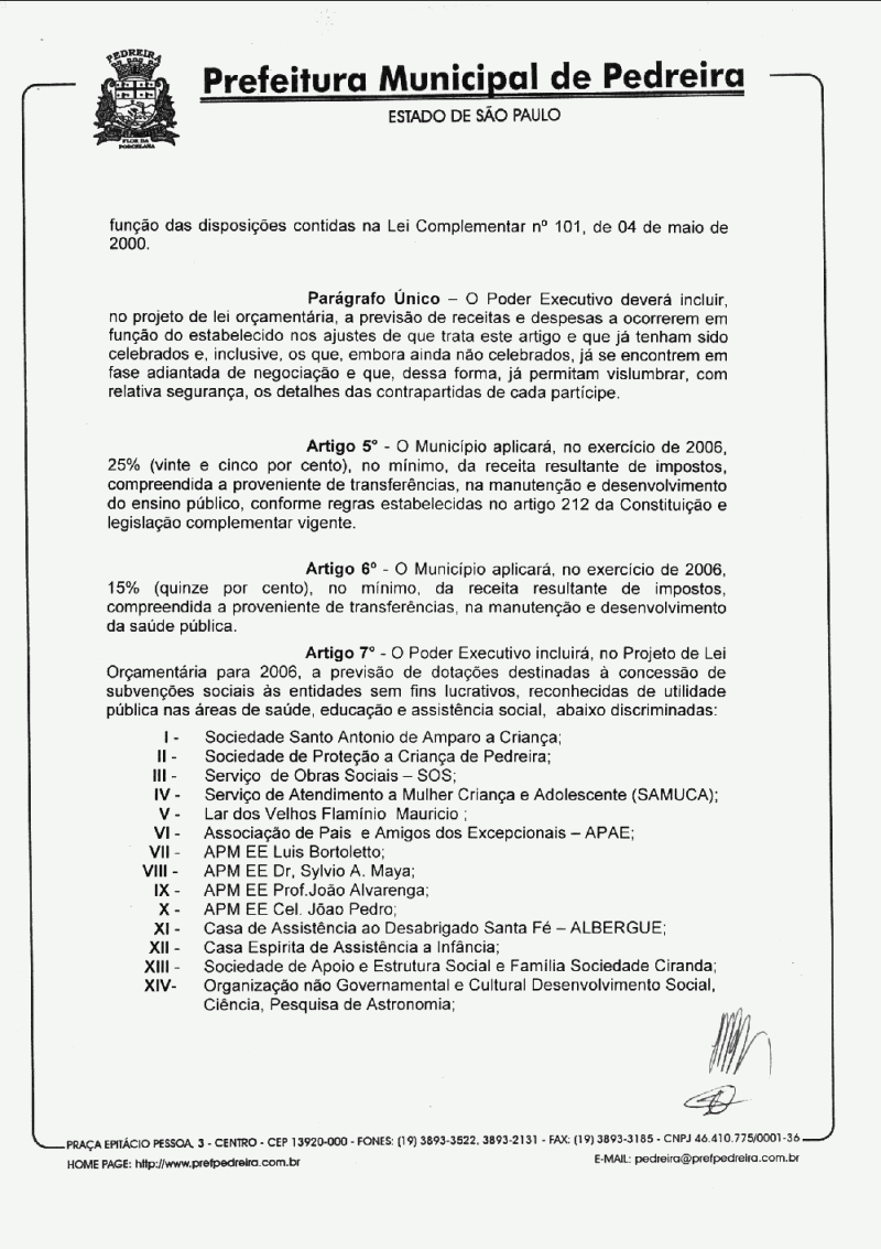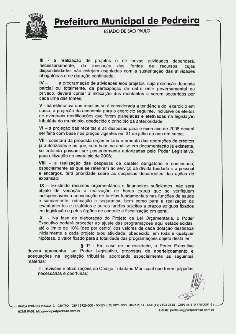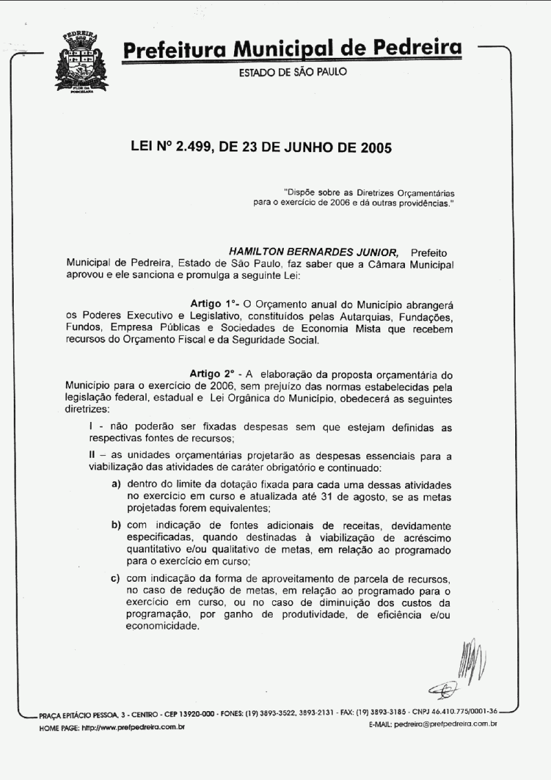 Ementa: Dispõe sobre as Diretrizes Orçamentárias para o exercício de 2006 e dá outras providências.