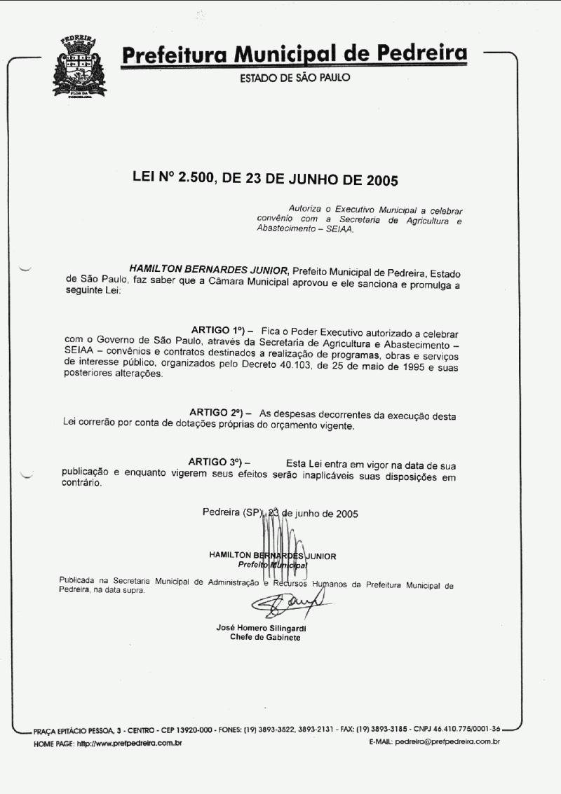 Ementa: Autoriza o Executivo Municipal a celebrar convênio com a Secretaria de Agricultura e Abastecimento - SEIAA.