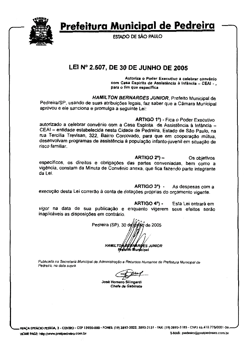 Ementa: Autoriza o Poder Executivo a celebrar convênio com Casa Espírita de Assistência à Infância - CEAI -, para o fim que especifica.