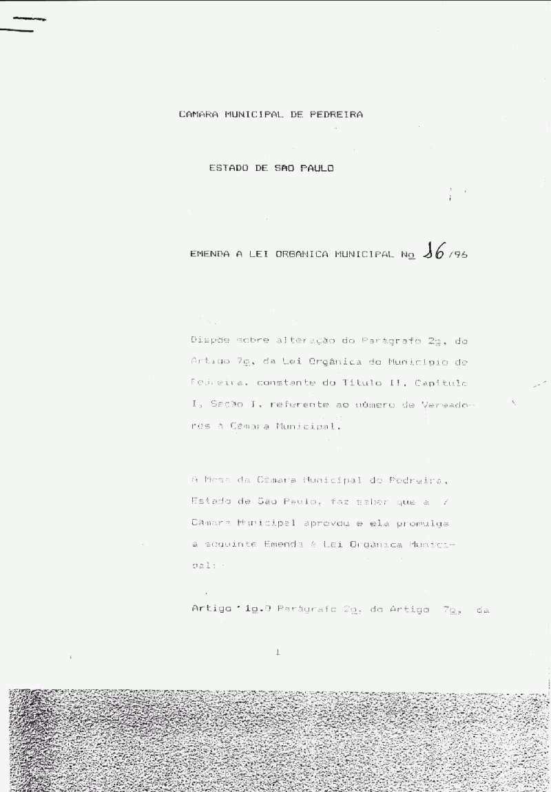 Emenda a Lei Organica do Municipio de Pedreira - N° 16 de 07/05/1996