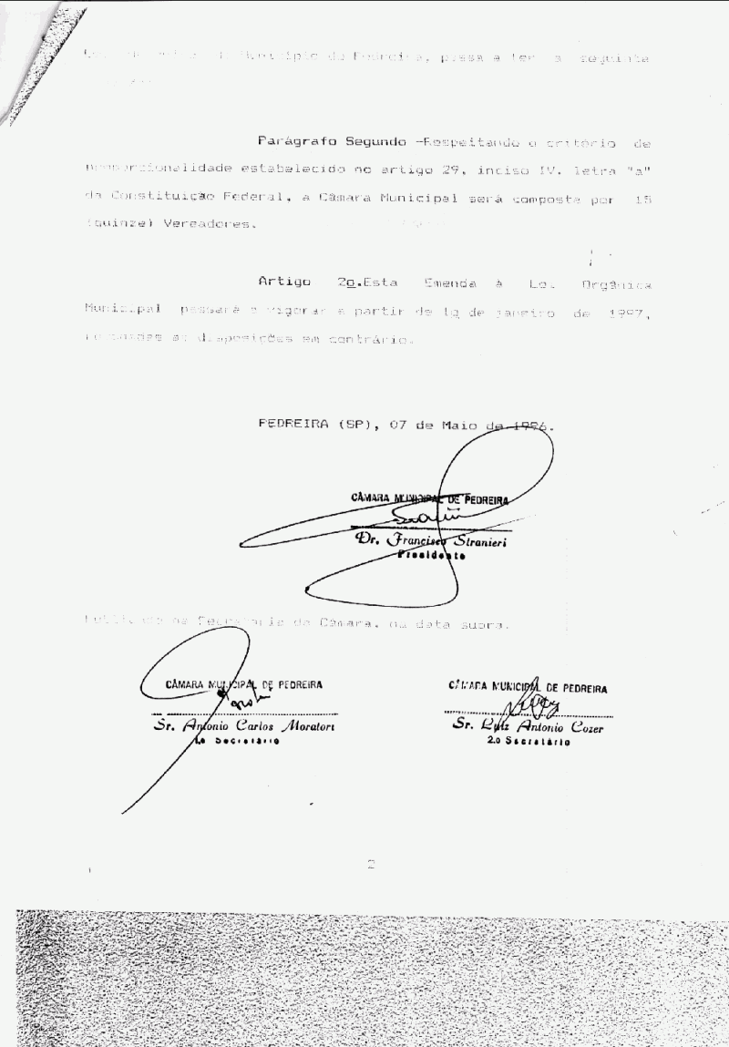 Ementa: Dispõe sobre alteração do parágrafo 2º, do Artigo 7º, da Lei Orgânica do Município de Pedreira, constante do Título II, Capítulo I, Seção I, referente ao número de Vereadores à Câmara Municipal.