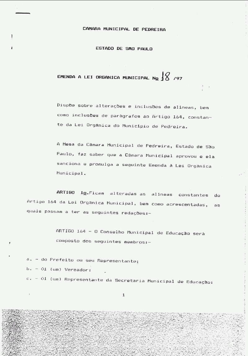 Emenda a Lei Organica do Municipio de Pedreira - N° 18 de 03/12/1996