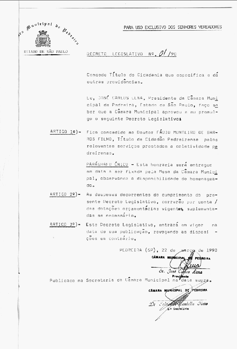 Decreto Legislativo - N° 1 de 22/03/1990