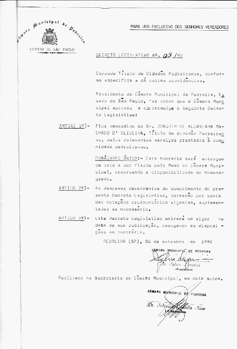 Ementa: Concede título de cidadão Pedreirense, conforme específica e dá outras providências