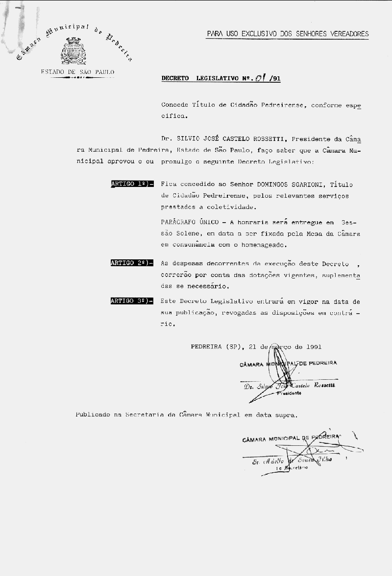 Ementa: Concede o título de cidadão Pedreirense, conforme especifica