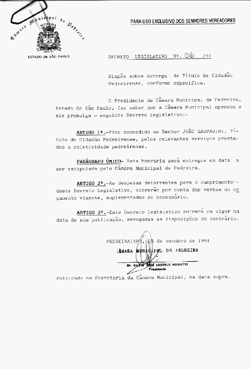 Ementa: Dispõe sobre outorga de título de cidadão Pedreirense, conforme específica
