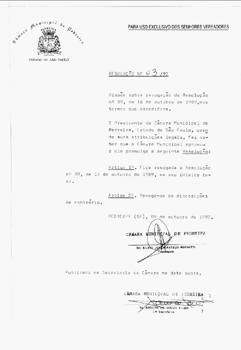 Resolucao - N° 3 de 09/10/1992