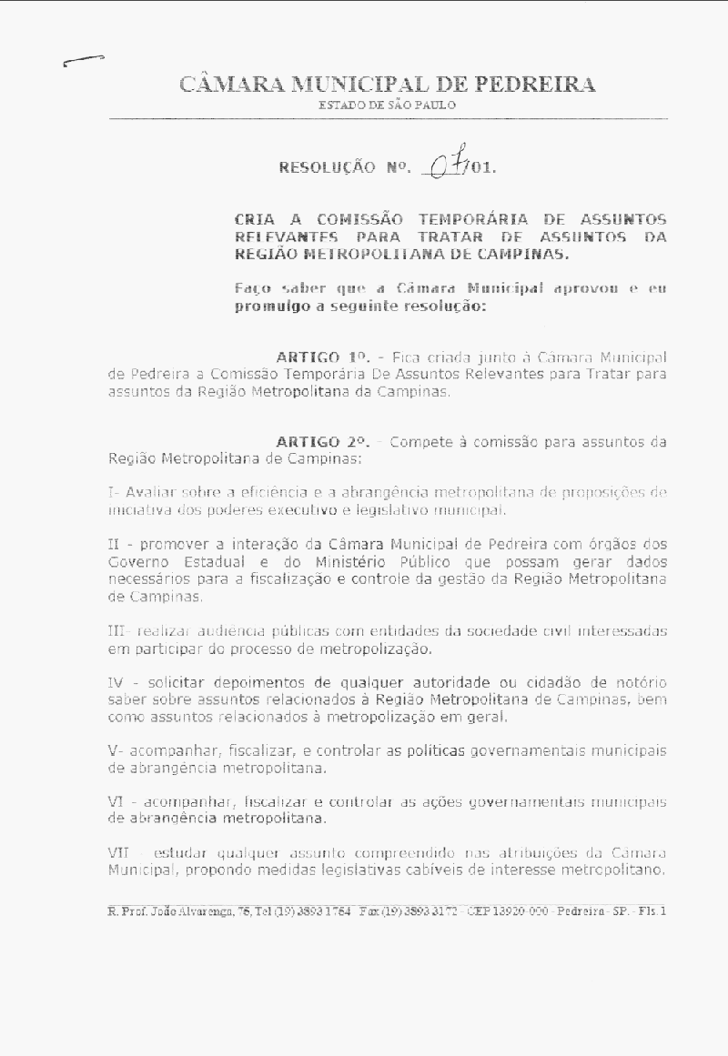 Ementa: Cria a comissão temporária de assuntos relevantes para tratar de assuntos da região metropolitana de Campinas.