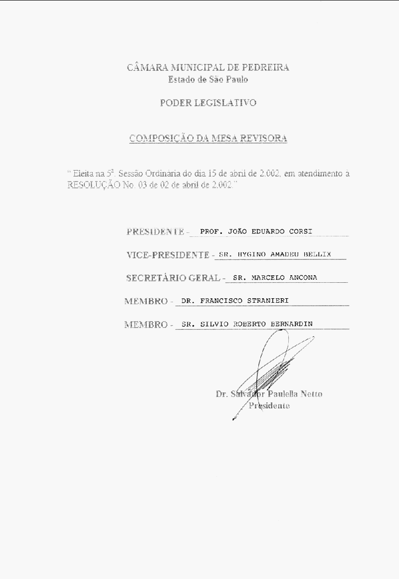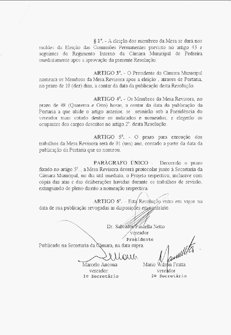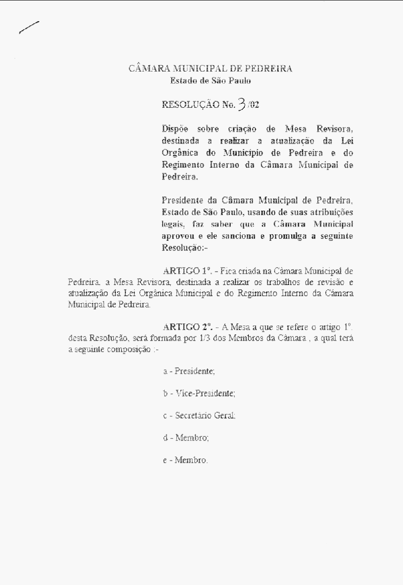 Ementa: Dispõe sobre criação de Mesa Revisora, destinada a realizar a atualização da Lei Orgânica do Município de Pedreira e do Regimento Interno da Câmara Municipal de Pedreira.