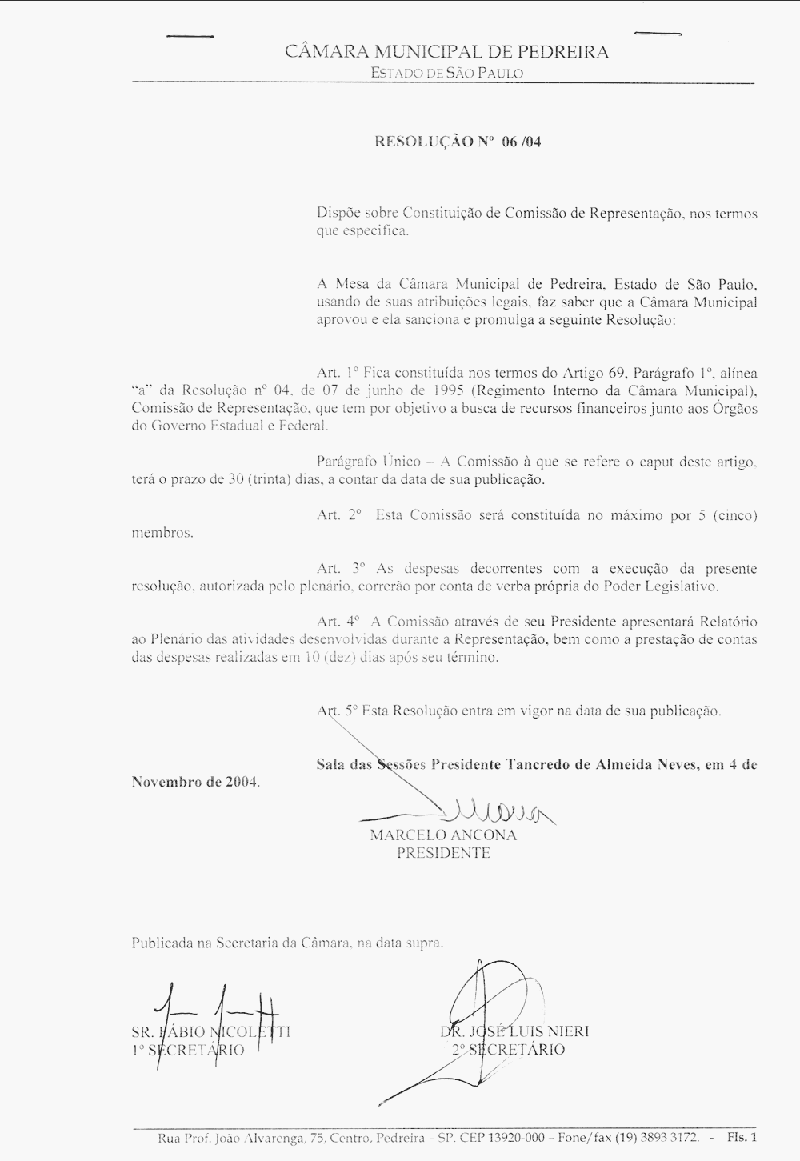 Ementa: Dispõe sobre Constituição de Representação, nos termos que especifica
