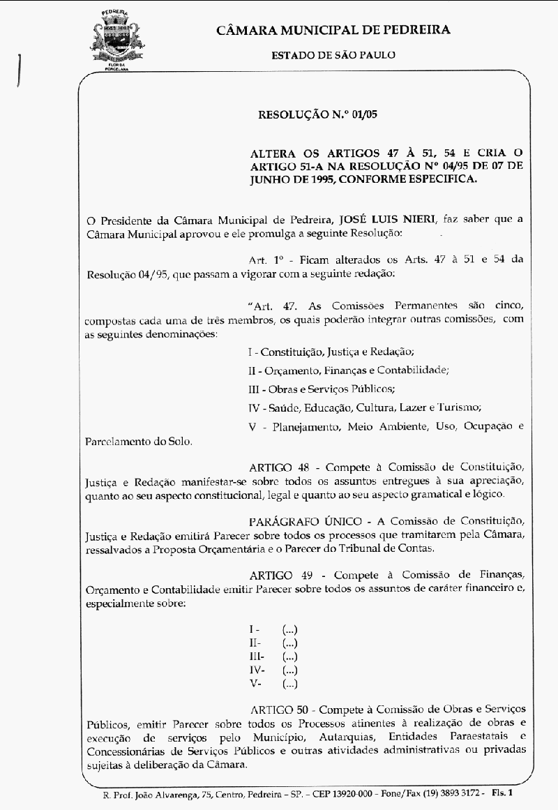 Ementa: Altera os Artigos 47 à 51, 54 e cria o Artigo 51-A na Resolução n° 04/95 de 07 de Junho de 1995, conforme especifica