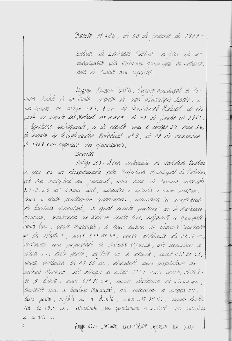 Ementa: Declara de utilidade pública, a fim de ser desapropriado pela Prefeitura Municipal de Pedreira, área de terreno que especifica