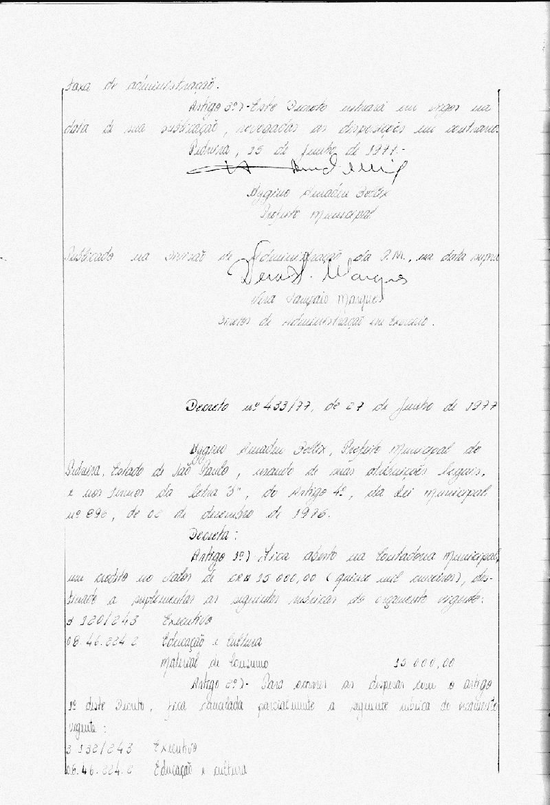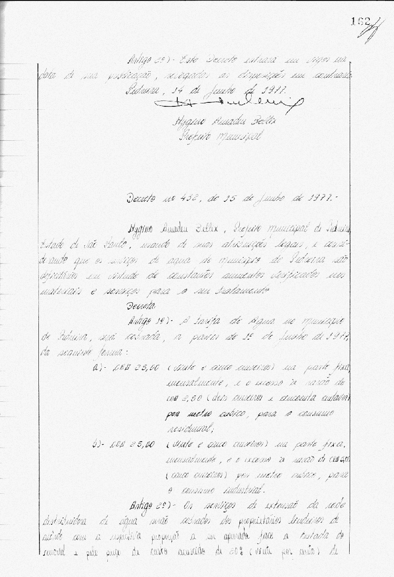 Ementa: Artigo 1° - A tarifa de água do Município de Pedreira, será cobrada, a partir de 1° de dezembro de 1977,