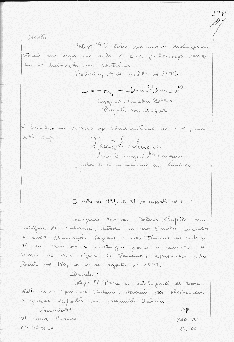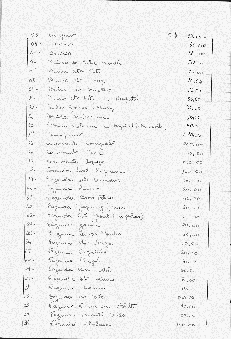 Ementa: Artigo 1° - Para a utilização de Taxas deste Município, de Pedreira, deverão ser obedecidas os preços dispostos na seguinte tabela