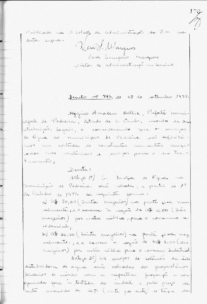 Ementa: Artigo 1° - A tarifa de água no Município de Pedreira, será cobrada, a partir de 1° de outubro de 1977, da seguinte forma