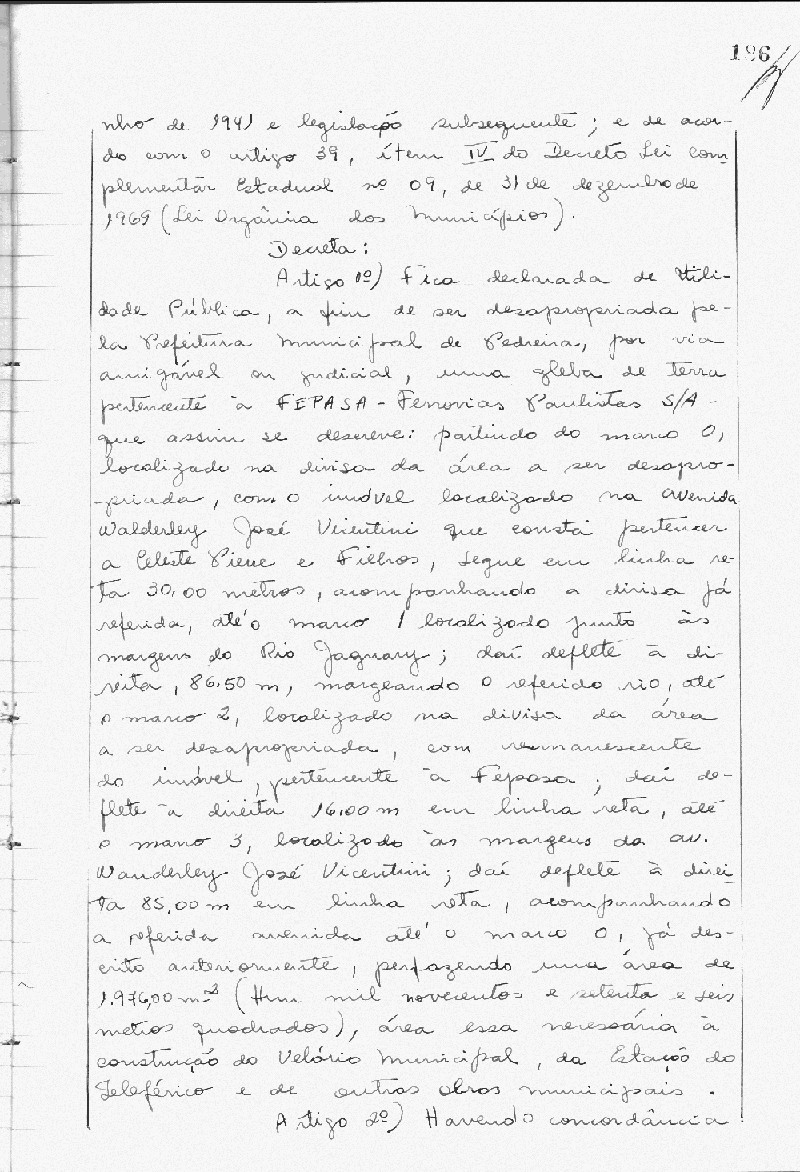 Ementa: Declara de utilidade Pública, a fim de ser desapropriada pela prefeitura Municipal de Pedreira, gleba de terra que especifica