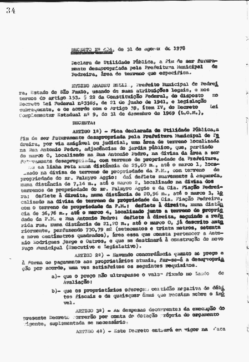 Ementa: Declara de Utilidade Pública, a fim de ser futuramente desapropriada pela Prefeitura Municipal de Pedreira, área de terreno que especifica
