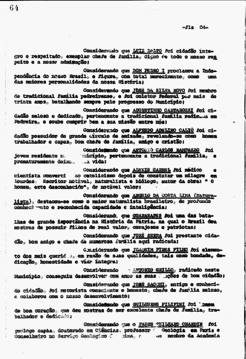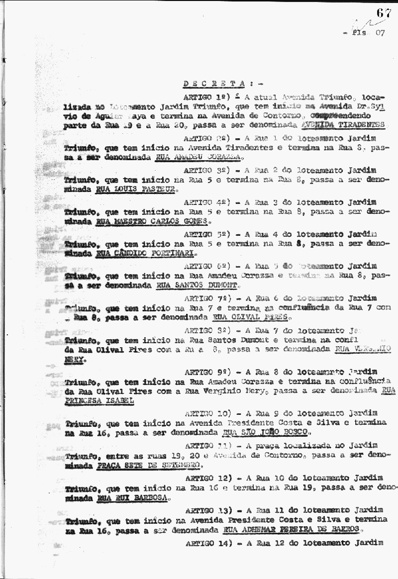 Ementa: Considerando que Joaquim José da Silva Xavier, o Tiradentes, Mártir da nossa Independência, sacrificou a própria vida na defesa dos mais altos ideais brasileiros, na épica Inconfidência Mineira