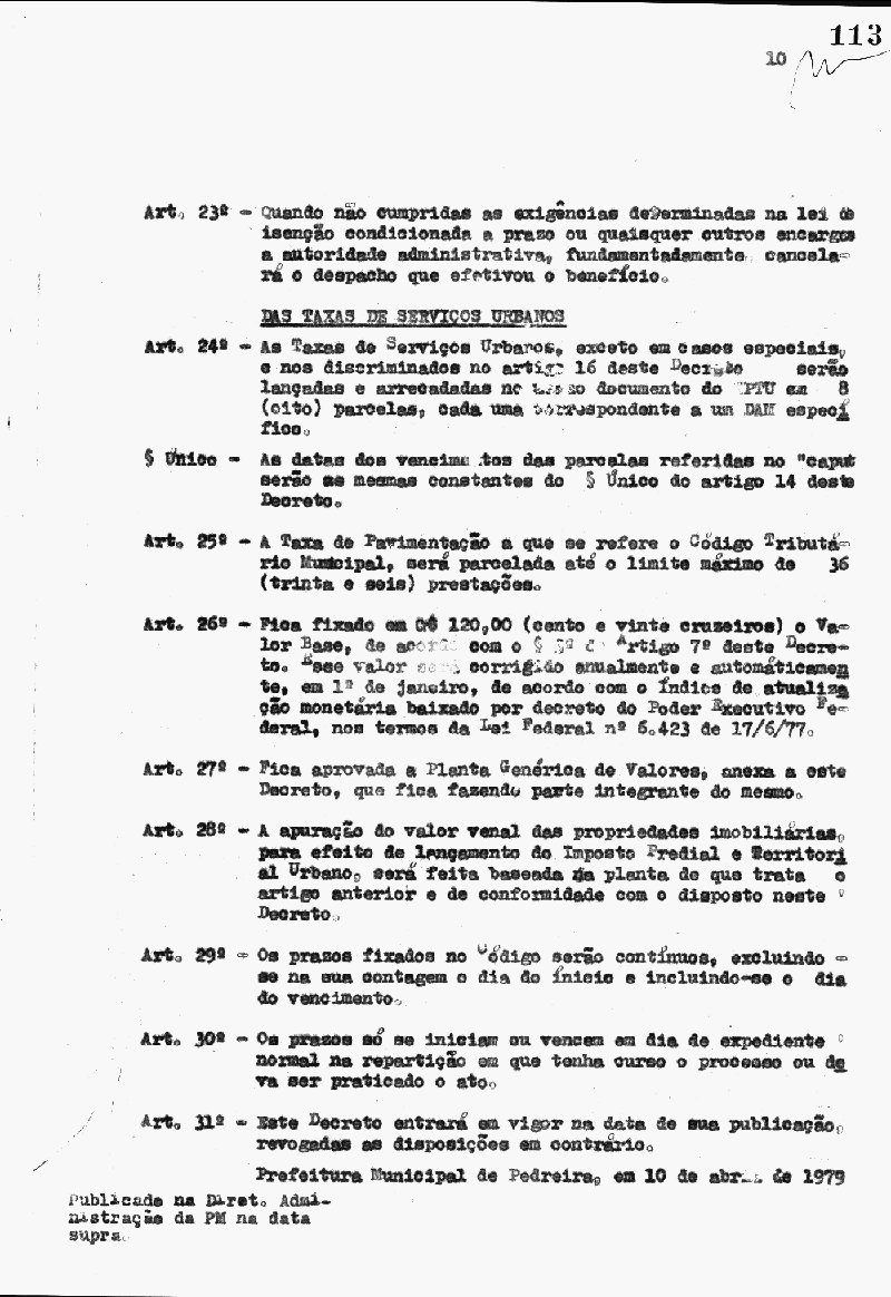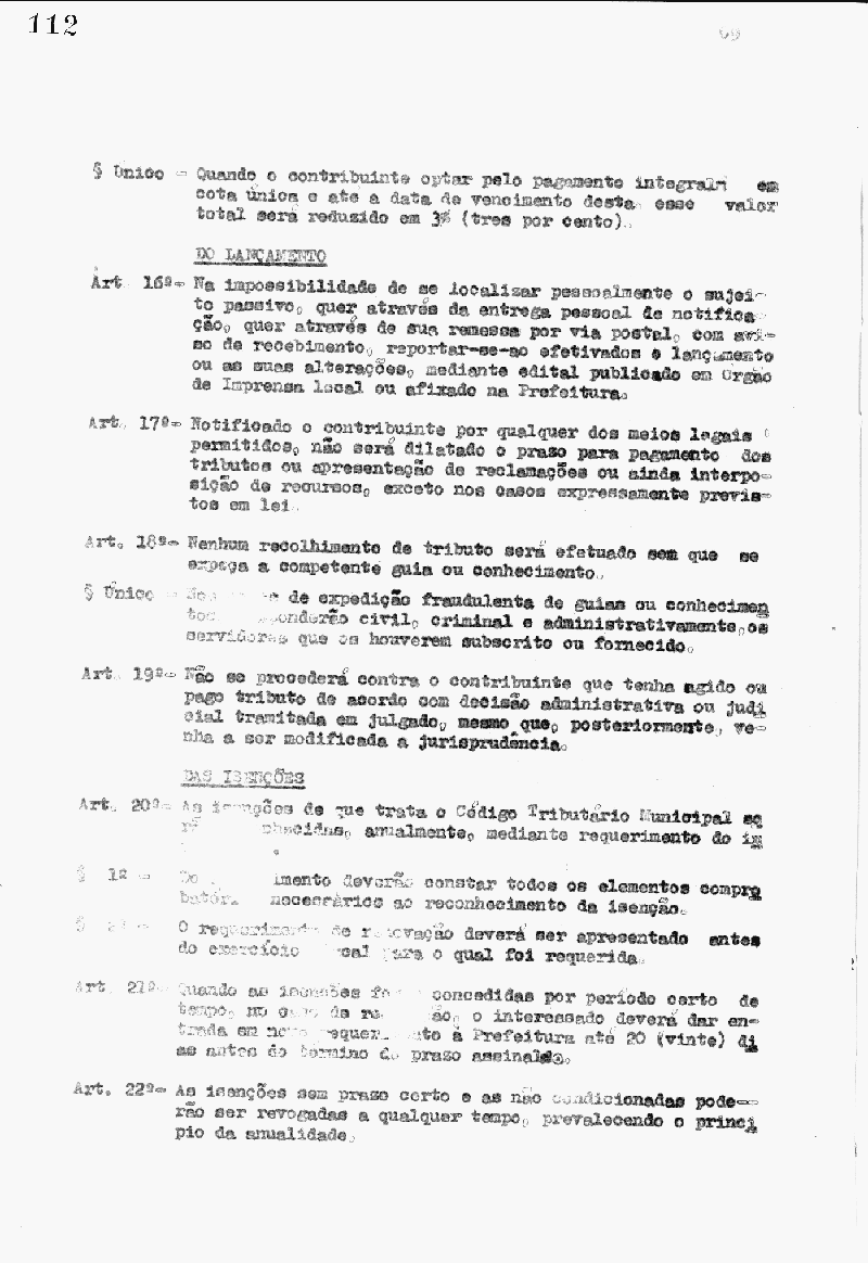 Ementa: Regulamenta impostos e taxas municipais.