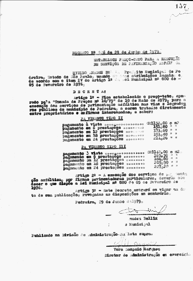 Ementa: Artigo 1° - Fica estabelecido o preço-teto, apurado pela "Tomada de Preços n° 10/79" de 10 de maio de 1979, para a execução dos serviços