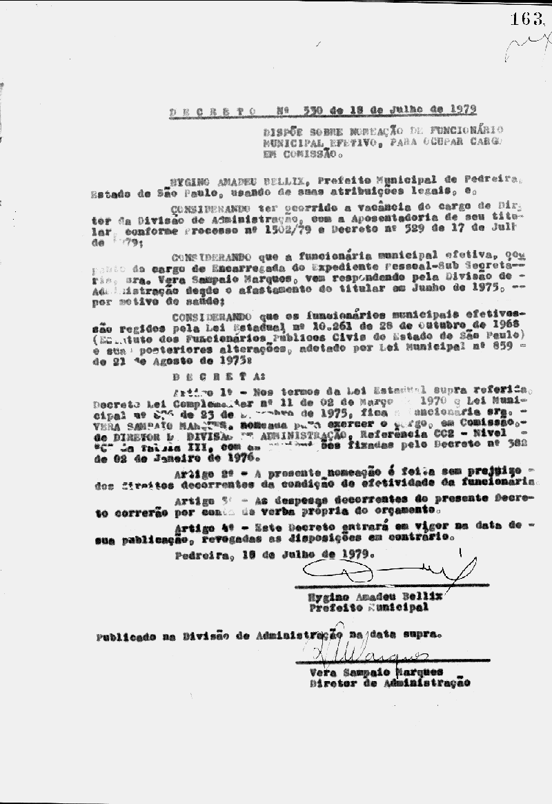 Ementa: Dispõe sobre numeração de Funcionário Municipal efetivo, para ocupar cargo em comissão