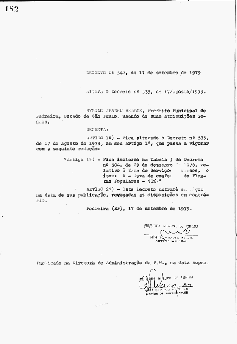 Ementa: Altera o Decreto n° 535, de 17 de agosto de 1979