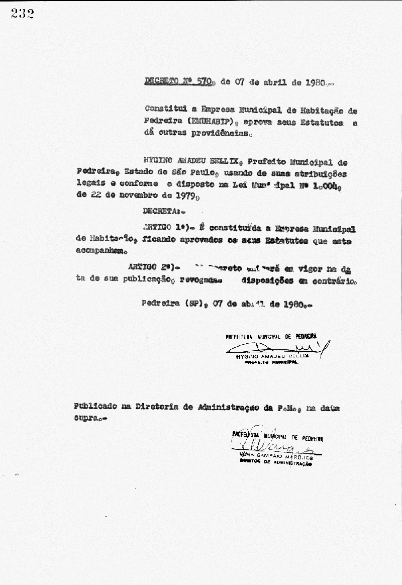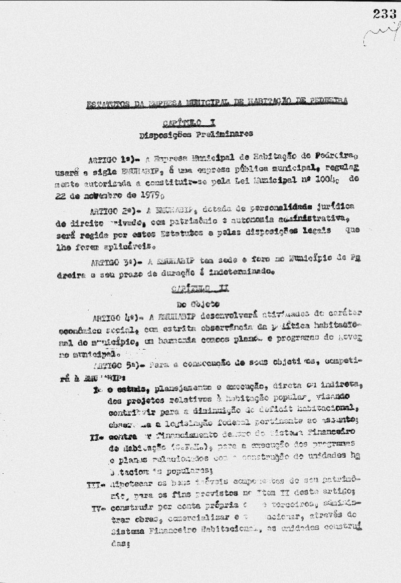 Ementa: Constitui a Empresa Municipal de Habitação de Pedreira (EMUHABIP), aprova seus estatutos e dá outras providências