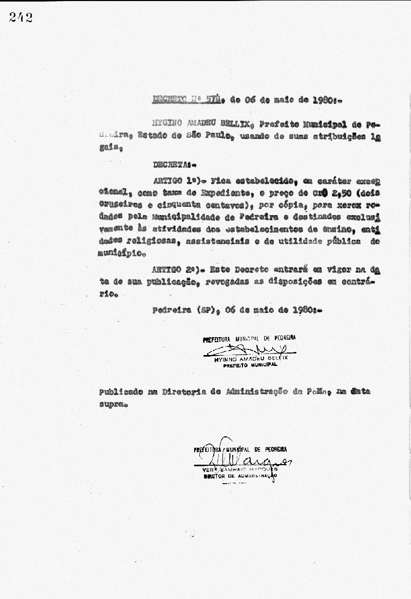 Ementa: Artigo 1°- Fica estabelecida, em caráter, como taxa de expediente