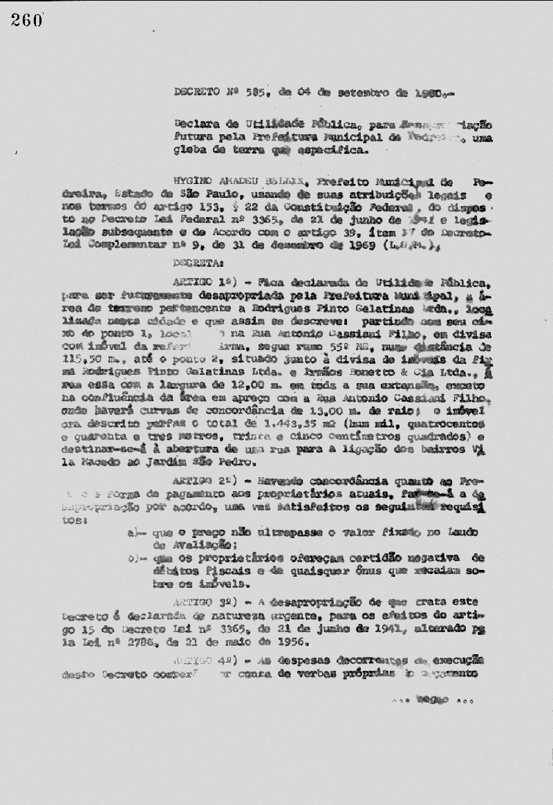 Ementa: Declara de utilidade pública, pela Prefeitura Municipal de Pedreira, uma gleba da terra que específica